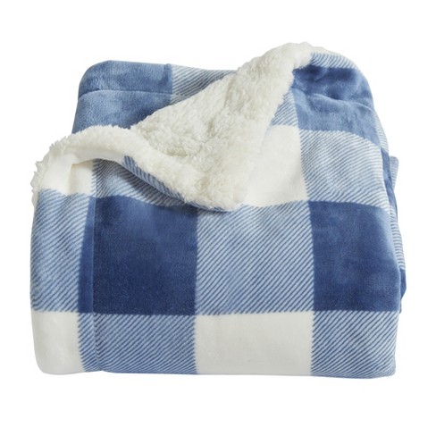 Great Bay Home Velvet Plush Fleece Reversible Warm And Cozy Bed Blanket King Buffalo Check Navy Target